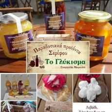 In a sweet and friendly environment, "To Glikisma", you will enjoy your coffee and you will find a great traditional variety of handmade sweets, pastries, pies, Serifos almonds macaroons, WEDDING PASTELS as well as seasonal sweets.